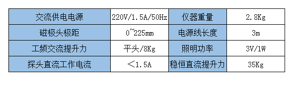 本产品采用220V交流电直接接入和8V便携式直流电源两种供电方式的磁轭探伤仪。具有开关寿命长、活动关节摆动大、灵敏度高、耗电量小、重量轻、携带方便等特点。