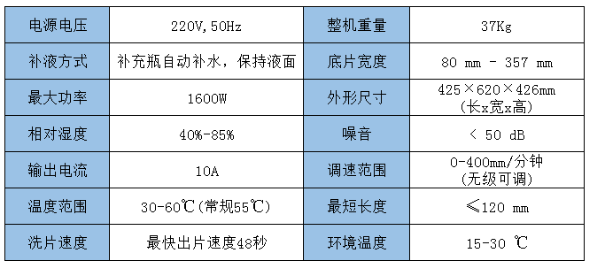 HD-3100型自动胶片干燥机,适应于手工冲洗X射线胶片干燥处理。该机器进片时具有预清洗功能,清洗水槽安装可控液面的自动补水功能。