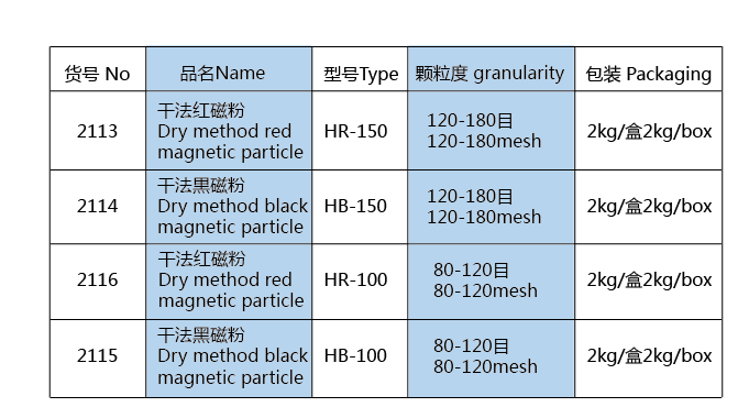 适用于化工、机械、汽车、船舶、冶金等行业铸锻件的磁粉探伤用。使用前请采用磁粉A型标准试片进行灵敏度试验。使用时注意粉尘污染。